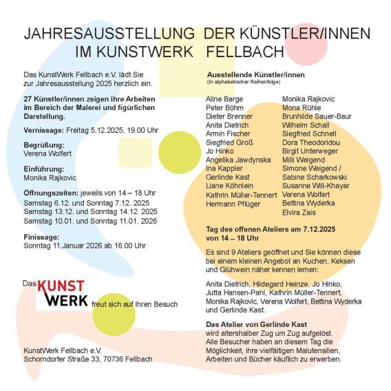 DEZEMBER 2025 KunstWerk Fellbach VERNISSAGE WERKSCHAU Freitag 5.12.2025 19 Uhr